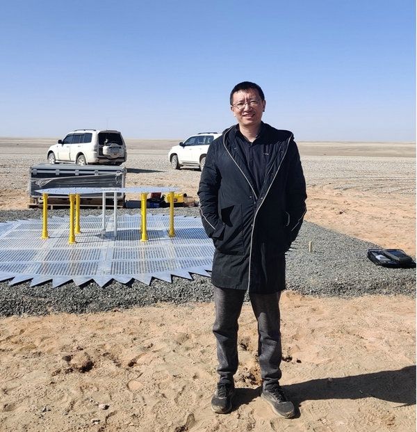 張樂副教授在戈壁灘開展宇宙再電離實驗的選址活動