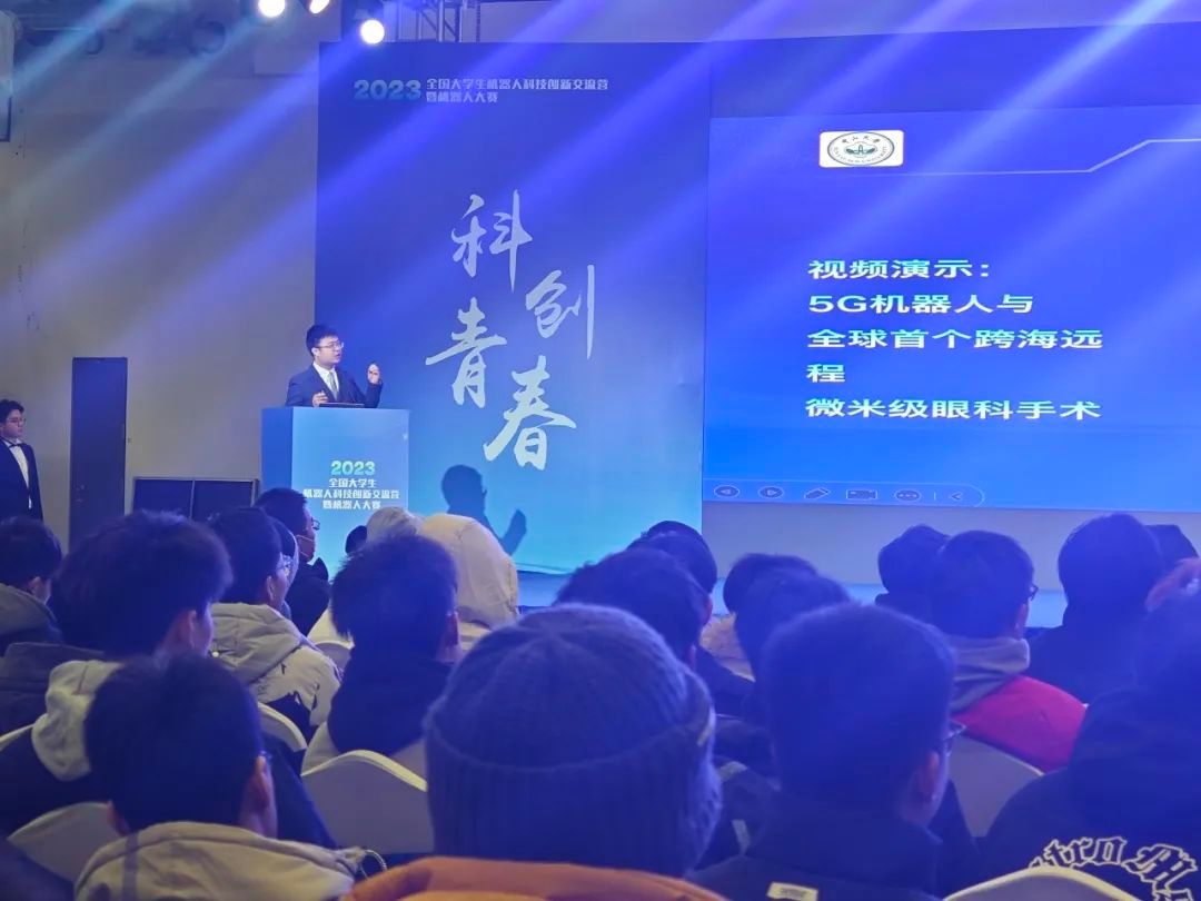 我校公共服務(wù)機(jī)器人賽道作品《5G遠(yuǎn)程微米級(jí)眼科手術(shù)機(jī)器人》獲全國(guó)特等獎(jiǎng),特種機(jī)器人賽道作品《“潛?dān)棥碧?hào)仿生空——海跨介質(zhì)多域工作機(jī)器人》獲全國(guó)三等獎(jiǎng)。