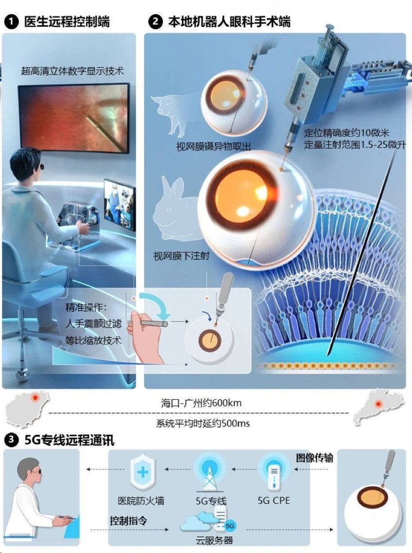 2023年6月23日,中山大學(xué)中山眼科中心林浩添教授團(tuán)隊(duì)聯(lián)合中山大學(xué)計(jì)算機(jī)學(xué)院黃凱教授隊(duì)、廣州市微眸醫(yī)療器械有限公司等多家醫(yī)、研、產(chǎn)機(jī)構(gòu)聯(lián)合攻關(guān)的“5G遠(yuǎn)程高精眼科手術(shù)機(jī)器人”,并于海南省眼科醫(yī)院成功開(kāi)展了全球首例5G遠(yuǎn)程微米級(jí)眼科手術(shù)。經(jīng)一個(gè)月的術(shù)后觀(guān)察,結(jié)果表明本次跨海遠(yuǎn)程手術(shù)效果安全穩(wěn)定。研發(fā)團(tuán)隊(duì)積極落實(shí)健康中國(guó)和制造強(qiáng)國(guó)戰(zhàn)略部署,聚焦臨床需求和健康保障,強(qiáng)化醫(yī)工協(xié)同,突破技術(shù)壁壘,打造微米級(jí)遠(yuǎn)程眼科手術(shù)醫(yī)療裝備。此次創(chuàng)新突破有助于加速我國(guó)高端醫(yī)療器械邁向國(guó)際領(lǐng)先水平,實(shí)現(xiàn)高水平科技自立自強(qiáng),推動(dòng)高質(zhì)量發(fā)展;同時(shí),對(duì)眼科優(yōu)質(zhì)醫(yī)療資源區(qū)域協(xié)調(diào)發(fā)展,實(shí)現(xiàn)全民眼健康事業(yè)有重要意義。
