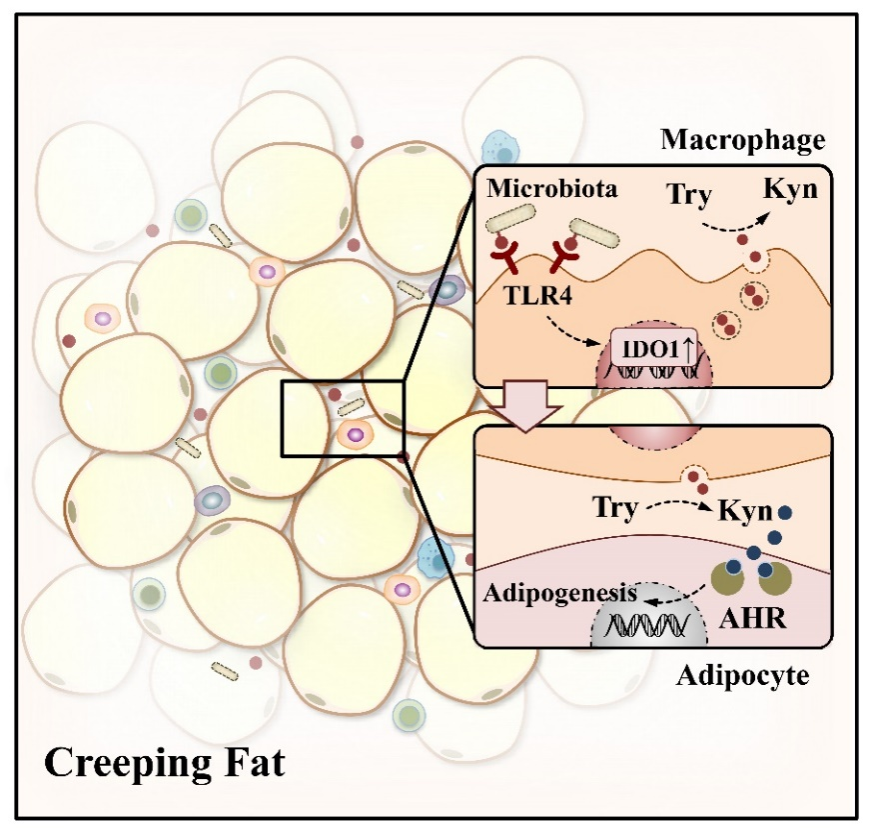 中大新聞網訊(通訊員劉山青、戴希安、簡文楊)11月13日,中山大學附屬第六醫院蘭平教授、何真主任醫師團隊在Cell子刊Cell Host and Microbe(IF=20.6)在線發表題為“Microbiota-induced alteration of kynurenine metabolism in macrophages drives formation of creeping fat in Crohn’s disease”的研究論文。該研究闡明了腸系膜微生物誘導的巨噬細胞代謝改變介導克羅恩病爬行脂肪形成的新機制,為爬行脂肪的干預提供新的治療靶點,也為改善克羅恩病患者預后、減少術后復發提供了新視角。