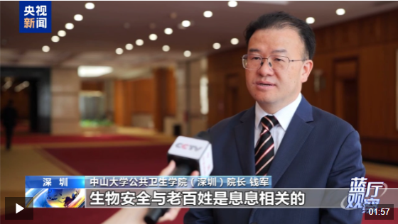 公共衛生學院(深圳)院長錢軍接受中央電視臺采訪
