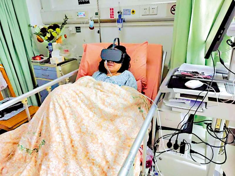 戴上“AI+VR”眼鏡,眼前的大自然景象,為病人帶來平靜。