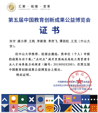 第五屆中國教育創新成果公益博覽會證書(來源:管理學院)