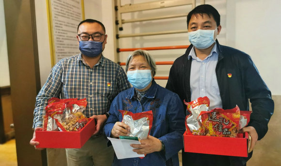 后勤教職工黨支部向老人送上年宵品(來(lái)源:孫逸仙紀(jì)念醫(yī)院)