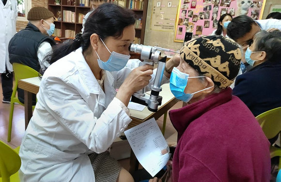 講座結(jié)束后,支部黨員在現(xiàn)場(chǎng)開展了義診活動(dòng)。現(xiàn)場(chǎng)老人們踴躍而有序地配合檢查,咨詢疾病的相關(guān)知識(shí)。支部黨員耐心、細(xì)致地為老人們進(jìn)行檢查,并根據(jù)檢查結(jié)果提出相應(yīng)的治療方式及護(hù)理建議,現(xiàn)場(chǎng)老人們非常滿意。活動(dòng)現(xiàn)場(chǎng)一位95歲的奶奶激動(dòng)地表示,13年前正是藍(lán)育青教授為她做的白內(nèi)障手術(shù),她一直銘記在心,這段數(shù)十年的醫(yī)患情為義診現(xiàn)場(chǎng)更添溫馨。