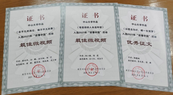“讀懂中國”作品獲獎證書(來源:離退休工作處)