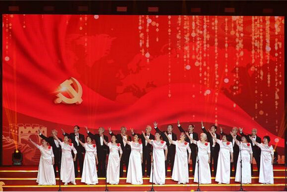 中山大學老教授合唱團在“學黨史、強信念、跟黨走”燈塔學習會省級示范活動中演唱《把一切獻給黨》,表達堅定的理想信念。