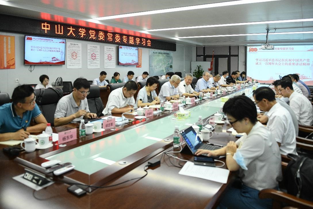 羅俊校長指出,習(xí)近平總書記代表黨和人民莊嚴(yán)宣告“我們實(shí)現(xiàn)了第一個百年奮斗目標(biāo),在中華大地上全面建成了小康社會,歷史性地解決了絕對貧困問題。”中華民族迎來了從站起來、富起來到強(qiáng)起來的偉大飛躍,實(shí)現(xiàn)中華民族偉大復(fù)興進(jìn)入了不可逆轉(zhuǎn)的歷史進(jìn)程。中華民族正以不可阻擋的步伐邁向偉大復(fù)興。他表示,在新的征程上,中山大學(xué)要接續(xù)奮斗,想大事、謀大事、干大事,努力為黨和人民爭取更大光榮。一是要進(jìn)一步增強(qiáng)政治責(zé)任感、歷史使命感,奮力推進(jìn)中國特色世界一流大學(xué)建設(shè)。二是要牢記立德樹人初心和為黨育人、為國育才使命,在新征程上把學(xué)校發(fā)展的路子走對走實(shí)走好,向人民、向歷史交出滿意的答卷。三是要深入學(xué)習(xí)貫徹習(xí)近平總書記“七一”重要講話精神,深刻把握學(xué)校所處發(fā)展階段、肩負(fù)時代使命,以新?lián)?dāng)、新作為,推動學(xué)校事業(yè)發(fā)展。