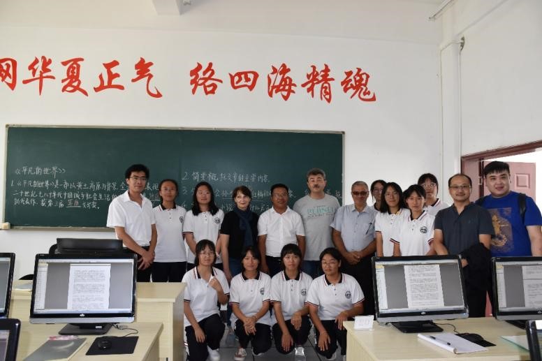 考察最后一天,當(dāng)?shù)貢視鴮憽懊烂琅c共”贈送給外籍教師,國際翻譯學(xué)院中東研究中心埃庫特副教授用阿拉伯文寫下“中國夢”回贈。