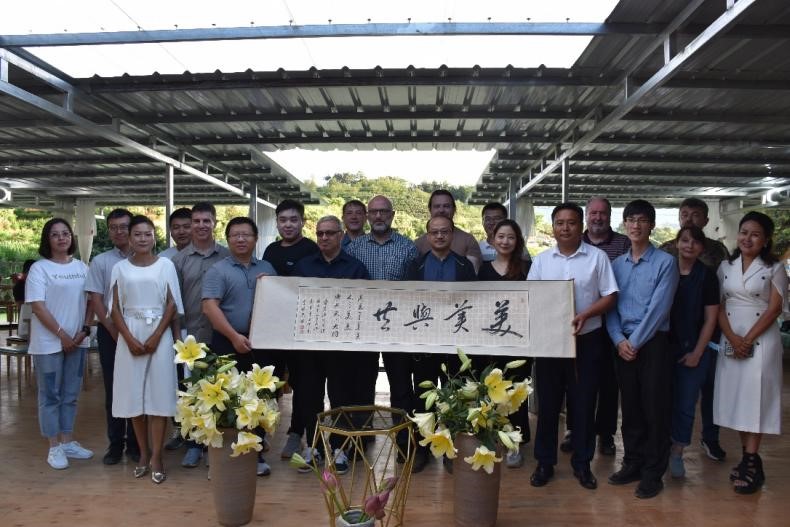 參加紅塘村高原生態(tài)金絲皇菊種植基地開園儀式后合影(來源:國際翻譯學(xué)院)