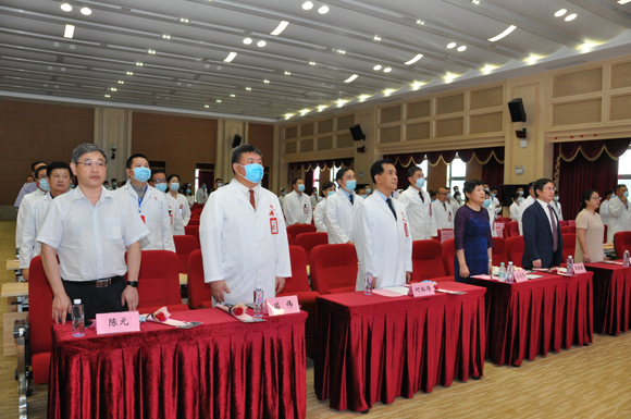 全體起立,奏唱中華人民共和國國歌(圖片來源:附屬第七醫院)