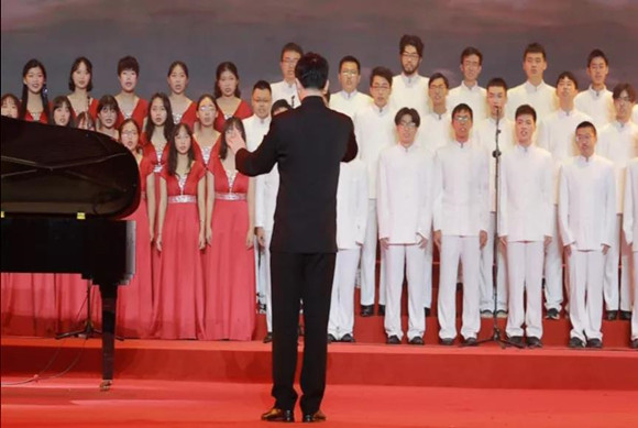 合唱《保衛黃河》(來源:黨委宣傳部 肖遙攝)