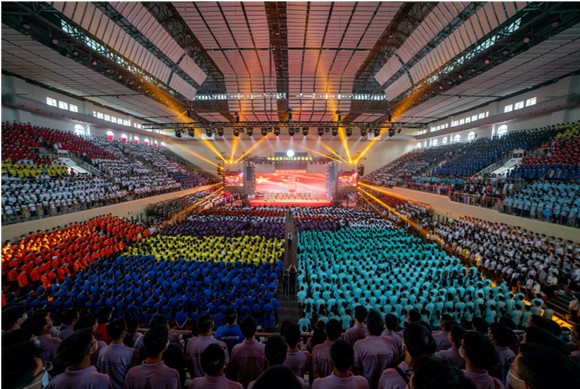 我校2020年開學典禮暨“開學第一課”在南校園新體育館舉行(來源:黨委宣傳部 肖遙攝)