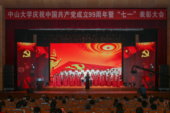 新聞網(wǎng)訊(記者 趙現(xiàn)廷)7月1日下午,我校慶祝中國共產(chǎn)黨成立99周年暨“七一”表彰大會(huì)在梁銶琚堂召開。教育部黨組派駐中山大學(xué)黨建工作聯(lián)絡(luò)員、廣東省委組織部及廣東省委教育工委有關(guān)同志,校領(lǐng)導(dǎo)、校長助理、院士代表和黨外人士代表、各二級(jí)黨組織負(fù)責(zé)人、校機(jī)關(guān)各部處室負(fù)責(zé)人,優(yōu)秀共產(chǎn)黨員、優(yōu)秀黨務(wù)工作者、先進(jìn)基層黨組織以及師生代表共500余人出席。大會(huì)同時(shí)通過學(xué)校融媒體平臺(tái)進(jìn)行直播。