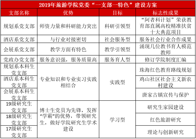 2019年旅游學院黨委“一支部一特色”建設方案(來源:旅游學院)