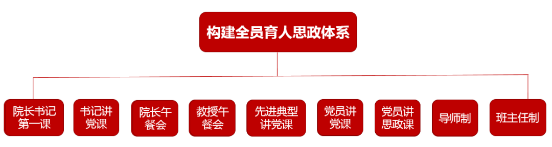 學院黨委堅持立德樹人根本任務,持續十一年的“我心目中的良師”評選活動帶動和激勵了一批敬業愛生的教師典范;打造形成了“全員育人”體系,包含了書記院長第一課、書記講黨課、院長午餐會、教授午餐會、先進典型講黨課、黨員講黨課、黨員講思政課、導師制和班主任制,全院教職員工調動起來,構建全員、全過程、全方位的“三全育人”體系。