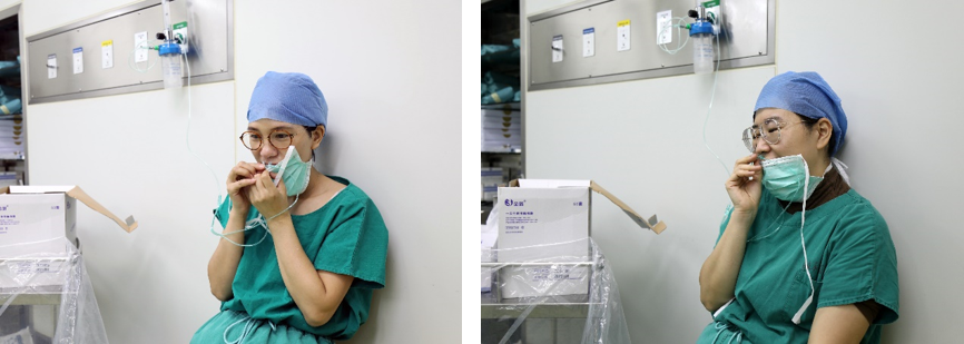 醫護人員在手術間隙吸氧緩解高原反應(來源:中山眼科中心)