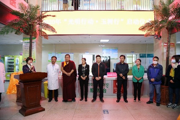 8月3日上午,2020年“光明行動·玉樹行”啟動儀式在玉樹八一醫院舉行。玉樹市委常委、市委統戰部部長普布加措,玉樹市人民政府副市長才仁永吉,玉樹市衛健局副局長扎西永吉,青海省政協委員嘎多活佛,玉樹八一醫院院長布尼瑪,中山眼科中心副主任梁小玲教授帶領的醫療隊,以及廣東省慈善總會副秘書長李彬,廣東省慈陽慈善基金會及其他社會志愿者們等參加了儀式。