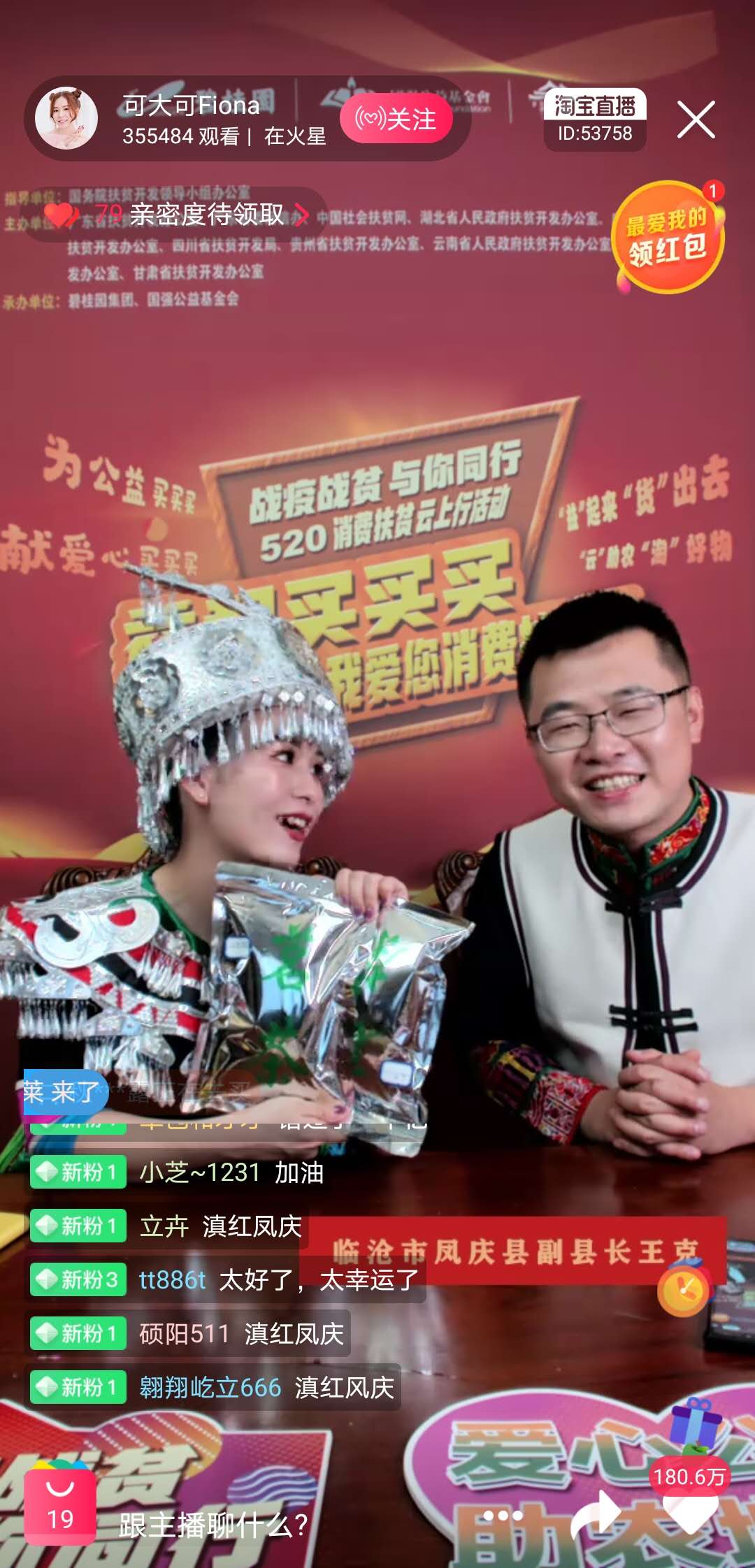 本次調研期間,我校掛職副縣長王克聯合碧桂園國強公益基金會、淘寶直播平臺在昆明舉辦“戰役扶貧與你同行520消費扶貧云上行活動”,在兩小時內直播帶貨鳳慶縣茶葉套裝等7026件,點贊人數200萬。林東偉副書記及調研團隊一行均在直播過程中下單購買,共同助力鳳慶縣消費扶貧。