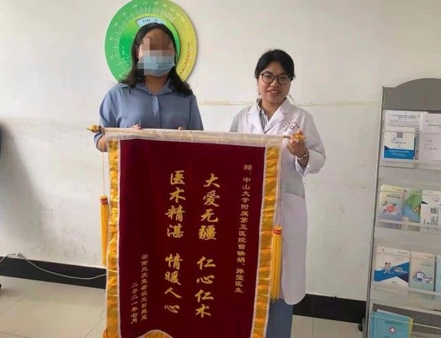 患者為曾映娟和孫瑩送錦旗(來源:附屬第五醫院)