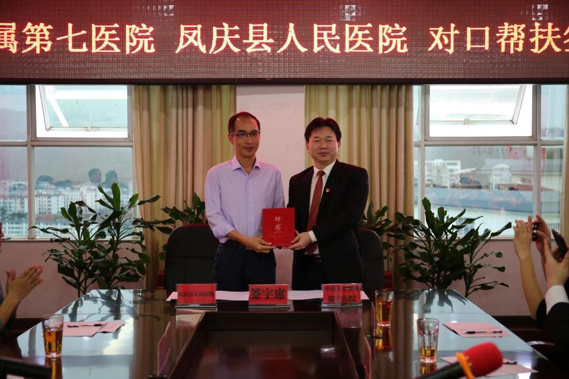 中山大學附屬第七醫院(以下簡稱中山七院)于2017年赴鳳慶縣人民醫院開展幫扶工作,開啟了對口幫扶工作的序幕。2018年8月,中山七院與鳳慶縣人民醫院簽訂了《中山七院對口幫扶鳳慶縣人民醫院協議書》,正式啟動了醫、教、研、管、文化等多方面、全方位、精準持續的對口幫扶工作。為實現鳳慶百姓“大病不出縣、小病不出村”的夙愿,中山七院一批又一批專家星火相傳、傾情幫扶,涌現了何裕隆、張常華、李明哲、方爍、黃張森等優秀工作者,在扶貧路上碩果累累。