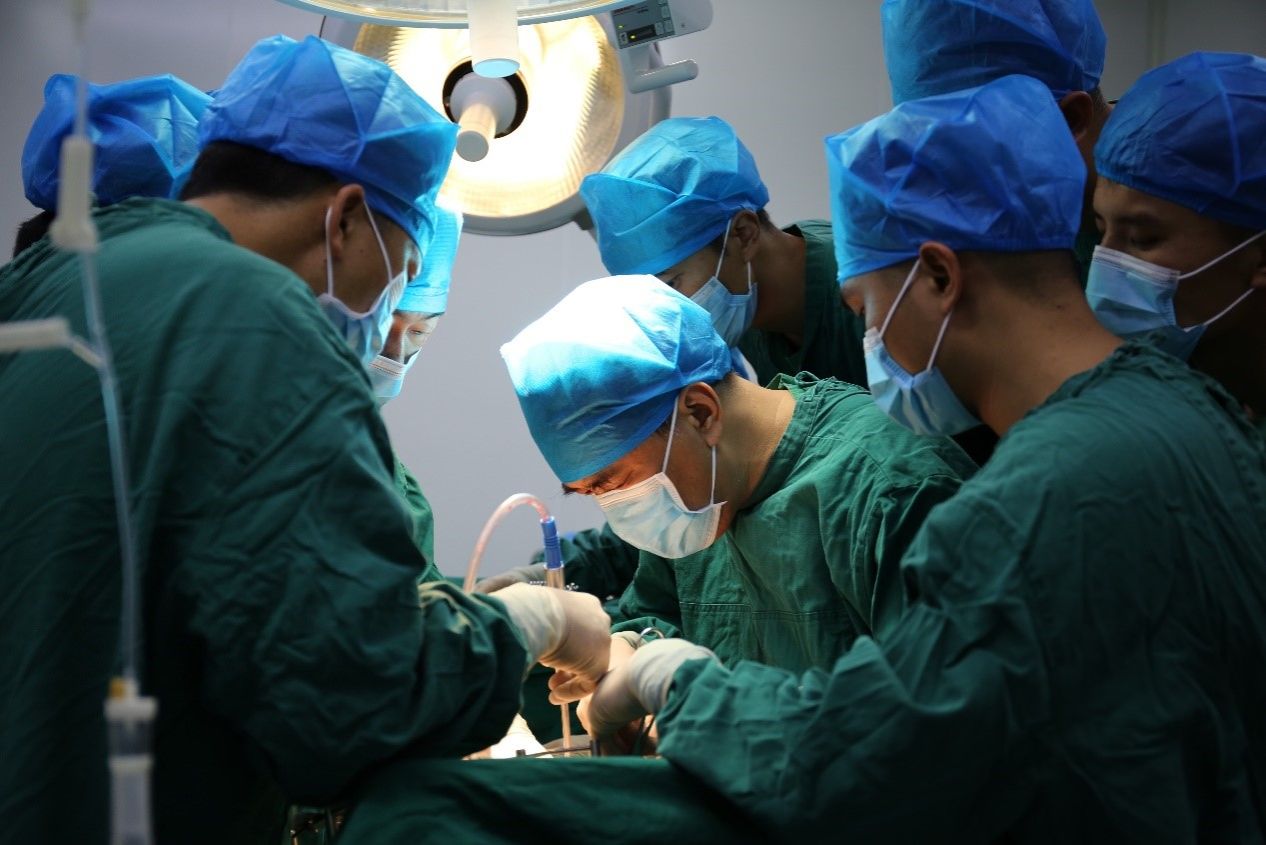 2020年6月,何裕隆參加醫院第二季度對口鳳慶縣人民醫院幫扶活動,在鳳慶縣人民醫院為高齡胃癌患者施行胃癌D2根治術(來源:附屬第七醫院)