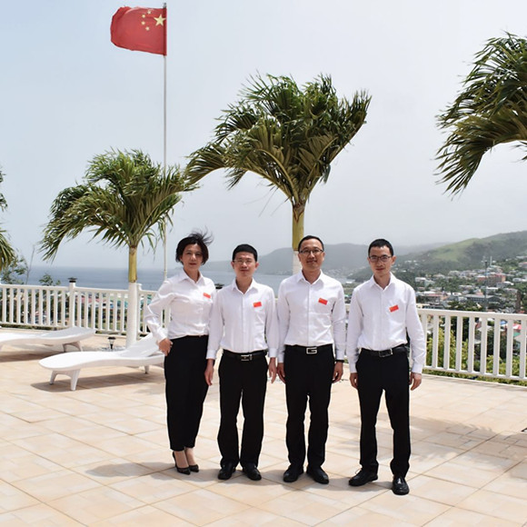 王風華主任醫師(左一)為首批援多米尼克國家醫療隊唯一女醫生