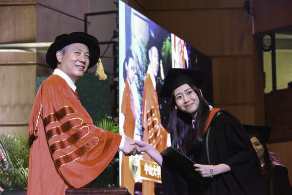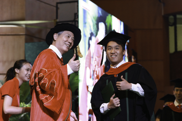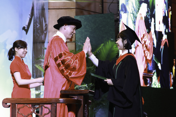 走下主禮臺(tái),環(huán)境科學(xué)與工程學(xué)院碩士畢業(yè)生林文婷和裴金鈴兩人難掩激動(dòng)和興奮,交流著跟校長握手的瞬間,“感覺在臺(tái)上的時(shí)間一下子就結(jié)束了,”裴金鈴是第一次參加中大的畢業(yè)典禮,“非常莊重,而且典禮的儀式感真的很棒!”林文婷本科時(shí)已經(jīng)歷過中大的畢業(yè)典禮,她打趣道:“最大的不同是拿到的畢業(yè)證顏色也不一樣了。回頭一想,在中大度過的六年仿佛只是一眨眼。我最感謝的是學(xué)校對(duì)我們綜合能力的培養(yǎng),不是單一的,而是多元化的。”