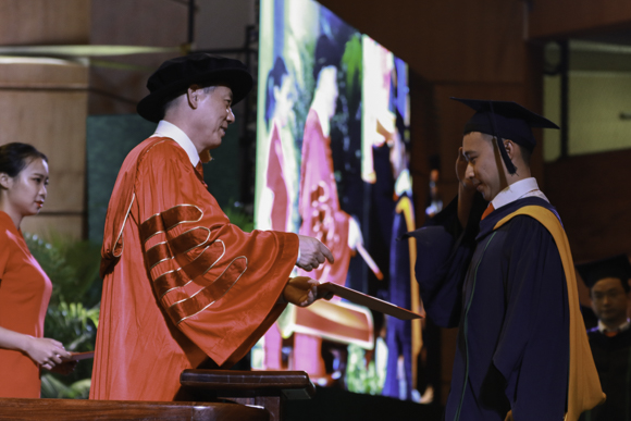 環(huán)境科學(xué)與工程學(xué)院碩士畢業(yè)生王文峰下臺(tái)后,聲音的顫抖還難以控制:“在臺(tái)上時(shí),我無法掩飾心情的激動(dòng),羅俊校長是那么的親切,我忍不住抓緊了他的手,握了又握。”六年以來在環(huán)境科學(xué)與工程學(xué)院本科、碩士的學(xué)習(xí),讓他從一個(gè)懵懂的少年,成長為一個(gè)沉穩(wěn)有擔(dān)當(dāng)?shù)漠厴I(yè)生。在學(xué)習(xí)過程中,王文峰找到了自己感興趣的研究方向,對(duì)它的感情日益深厚。“上臺(tái)的那一刻,我想到,終于到了這一天,可以將學(xué)到的專業(yè)知識(shí)應(yīng)用于實(shí)踐,可以大展身手,將自己所學(xué)貢獻(xiàn)給祖國社會(huì)。”