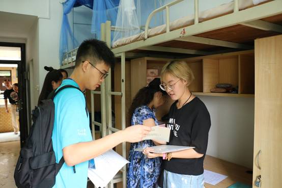 管理學院迎新采用“學長團+志愿者”的模式,2016級的同學們也為這次的迎新活動付出了很多時間和精力。他們提前返校接受第二次學長團培訓,準備新生報道資料袋等物資,精心布置對接的新生宿舍,并與他們積極聯系、盡可能地給予幫助。在這一過程中,兩個年級的同學們加強了交流,彼此都獲得了很大的成長。