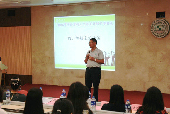 開學典禮上,陳敏主任代表教務部祝賀入選“卓越班”的全體同學,感謝外國語學院提供良好平臺、滿足學生多樣化發展需求,期待學校繼續為“卓越計劃”提供支持,希望同學們珍惜并利用學習條件和資源,茁壯成長。