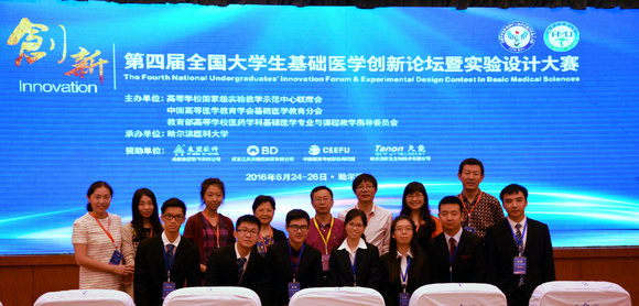 6月24-26日,由高等學(xué)校國家級實(shí)驗(yàn)教學(xué)示范中心聯(lián)席會(huì)、中國高等醫(yī)學(xué)教育協(xié)會(huì)基礎(chǔ)醫(yī)學(xué)教育分會(huì)和教育部高等學(xué)校醫(yī)藥學(xué)科基礎(chǔ)醫(yī)學(xué)專業(yè)與課程教學(xué)指導(dǎo)委員會(huì)聯(lián)合主辦的“第四屆全國大學(xué)生基礎(chǔ)醫(yī)學(xué)創(chuàng)新論壇暨實(shí)驗(yàn)設(shè)計(jì)大賽”在哈爾濱醫(yī)科大學(xué)舉行。本次大賽由包括北京大學(xué)、復(fù)旦大學(xué)、中山大學(xué)、協(xié)和醫(yī)科大學(xué)、華中科技大學(xué)、中南大學(xué)等90余所院校在內(nèi)的395支大學(xué)生隊(duì)伍參賽。該比賽是醫(yī)學(xué)院校僅次于臨床技能大賽的全國性比賽,大賽規(guī)格高、參賽院校多、參賽選手強(qiáng)、競爭異常激烈。比賽設(shè)一、二、三等獎(jiǎng),分別占參賽隊(duì)伍的10%,20%和30%,每個(gè)學(xué)校最多只能選派6支參賽隊(duì)伍。