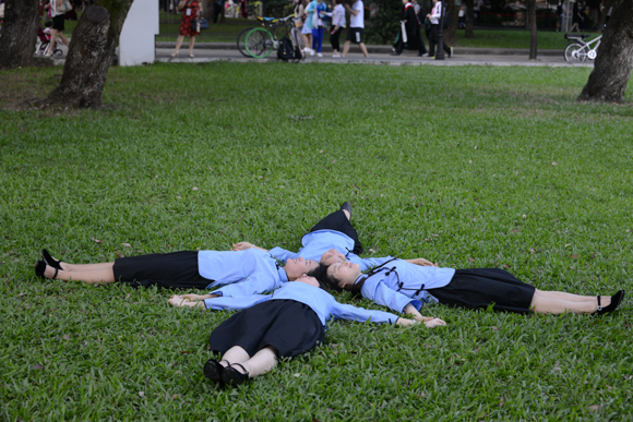 博雅學院的畢業典禮剛結束,畢業生陳俊宇牽著女朋友徐雅筠的手去拍畢業照。“四年以來,感謝中大將我培養成一個有學識、有素養的人,”陳俊宇說,“當然,還要更加感謝中大讓我遇見了我最喜歡的’她’。”話畢,陳俊宇摟緊了徐雅筠的肩膀,微笑道:“這四年是知識和感情的豐收,我愛中大。”清風徐來,他們從樹蔭下攜手走過,無限深情,正如他們所攜手走過的四年。