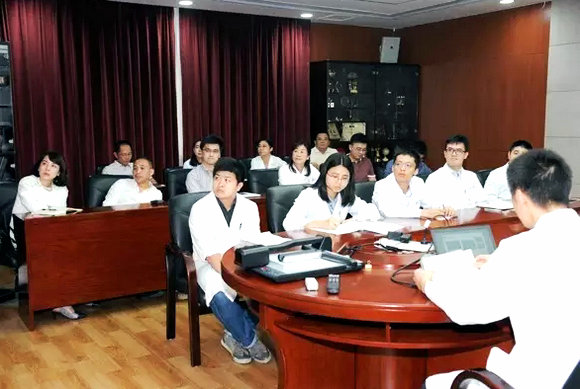 圖為腫瘤防治中心機(jī)關(guān)黨支部開展的黨課現(xiàn)場