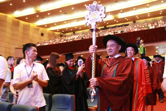7月4日,當鳳凰花再度火熱綻放于康樂園時,我們如約相聚在梁銶琚堂,拉開2015年畢業季的序幕。連續四天的時間里,來自四個校區的14073名畢業生將逐一登臺,在聚光燈下接受來自校長和主禮教授的祝福,完成這一神圣而莊嚴的儀式。神秘的魔法權杖,沉甸甸、金燦燦的畢業紀念冊,師長們慈愛的目光,親友們溫暖的陪伴與祝福……都一一烙入畢業生們的腦海,成為他們前進路上最寶貴的禮物。