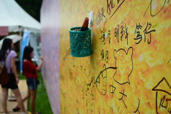 謝淑同學剛結束畢業典禮便趕來現場,當《紅日》音樂響起時,他再也按捺不住,興奮地參與到了歡快的歌舞中;而當純真的《童年》響起,謝同學眼角也有了一絲濕潤:“在廣東呆了六年,這一次,真的要走了,有時候會忍不住幻想,六年時光或許只是一場美麗的夢,夢醒后,發現自己只是在午后的書桌上睡著了。”