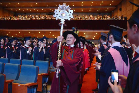 24日,梁銶琚內舉行了四場儀式,中國語言文學系、歷史學系、哲學系、博雅學院、亞太研究院、港澳珠三角研究中心、法學院、教育學院、社會科學教育學院、心理學系、管理學院、傳播與設計學院的畢業生,在莊嚴的典禮中接受洗禮,整裝啟航。