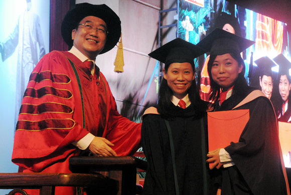 雙胞胎姐妹花阮漪漣、阮漪灝,今年同時從政治與公共事務管理學院碩士畢業,畢業論文也由同一個導師——肖濱教授指導。奇妙的是,兩姐妹自從小學之后便一直在不同的學校讀書;本科時,一個在中大化學與化學工程學院就讀,畢業后在工學院做行政管理工作,一個在暨南大學外語學院,畢業后在美國一家空調公司廣州部工作;直到讀研時才“再續”同窗情緣,就讀于相同的學院、師從同一個導師、同時登上畢業典禮的舞臺。