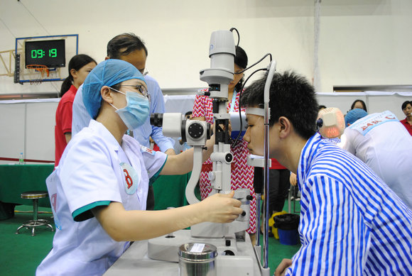 成人“標準化病人”正在接受眼科檢查