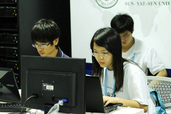 4月22日上午,廣州超算中心ASC14總決賽現場,各參賽隊仍處于緊張的調試和優化階段。就在此時,兩張近乎一模一樣的面孔引起了我們的注意。