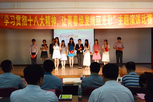 為深入學習貫徹黨的十八大精神,展現當代大學生的良好精神風貌,5月17日下午,由校團委主辦,校團委學生團體部承辦的中山大學“學習貫徹十八大精神,讓青春煥發絢麗光彩”主題演講比賽決賽在東校區落下帷幕。省委組織部組織處調研員、副處長陳凱雄,副調研員陸梅,團省委學校部副部長曾王興,省委教育工委組織處主任科員鄧旭峰等出席決賽現場。傳播與設計學院副院長、博士生導師張志安副教授,校團委書記黃毅,校黨委組織部副部長范濤,校團委副書記劉澤煬,以及2012年全國英語辯論賽冠軍、法學院黃靖文同學擔任本次決賽的評委。