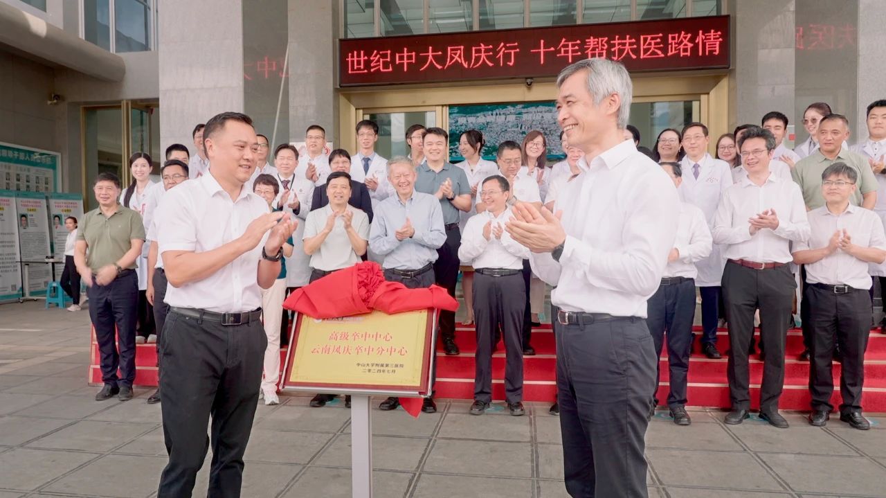 今年是中山大學醫療幫扶鳳慶十周年。十年來,中山大學“組團式”醫療幫扶鳳慶縣人民醫院,為鳳慶縣帶去新技術、新理念、新平臺,讓老百姓在家門口就可以享受優質服務。中山大學各附屬醫院聯合組織“百年中大鳳慶行,十年幫扶醫路情”大型義診活動。陳春聲書記、高松校長調研走訪鳳慶縣人民醫院,慰問幫扶專家,查看義診活動現場,并共同見證中山大學附屬第三醫院高級卒中中心云南鳳慶卒中分中心揭牌。