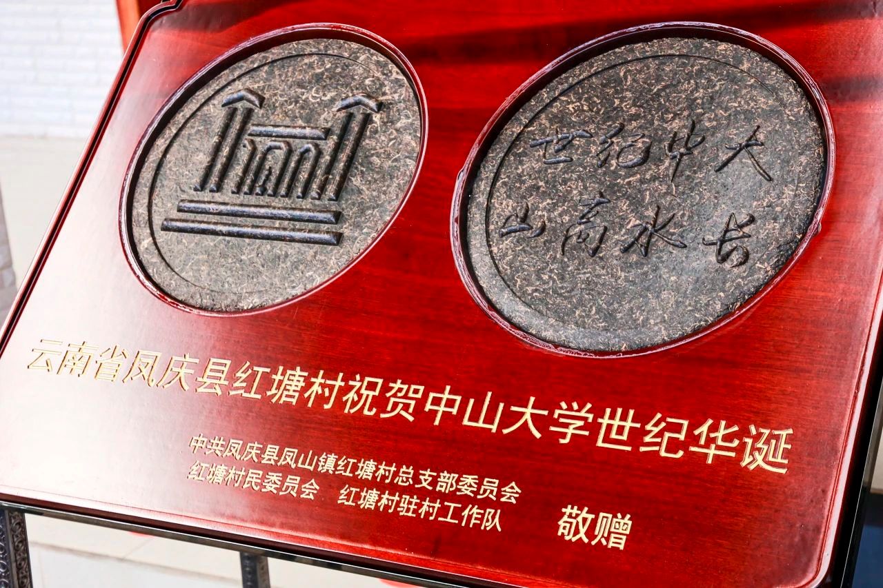 紅塘村兩委、工作隊向學校贈送獻禮茶餅。獻禮茶餅采用紅塘村出產的茶葉原料,分別用云南特有的曬青綠茶和滇紅茶工藝制作,一紅一綠兩種工藝與中山大學“紅墻綠瓦”建筑風格相呼應。陳春聲書記、高松校長還走訪了村集體產業發展情況,中大派駐紅塘村第一書記黃鑫匯報了紅塘村熱情果示范種植基地以及紅塘村文化旅游業發展情況。