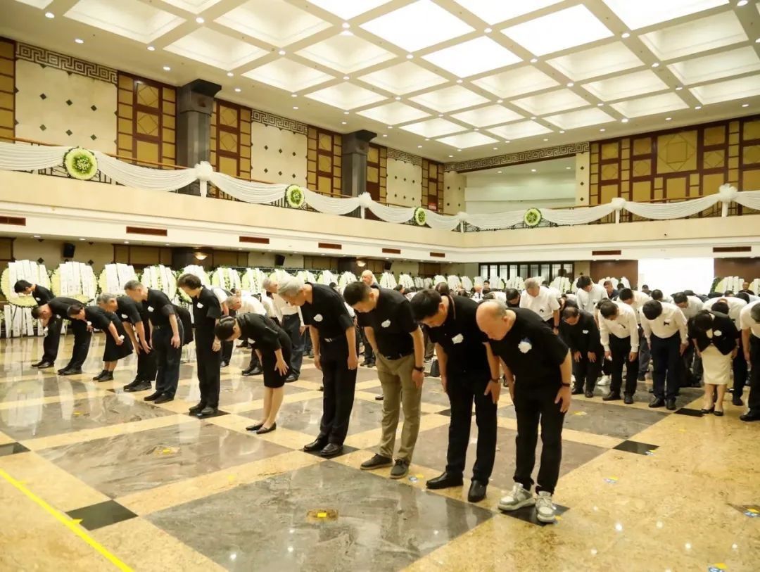 在深沉悠揚的鋼琴曲《我的祖國》中,與會人員追憶夏老波瀾壯闊的一生,逐一瞻仰夏書章同志遺容作最后告別,并對家屬表達深切慰問。