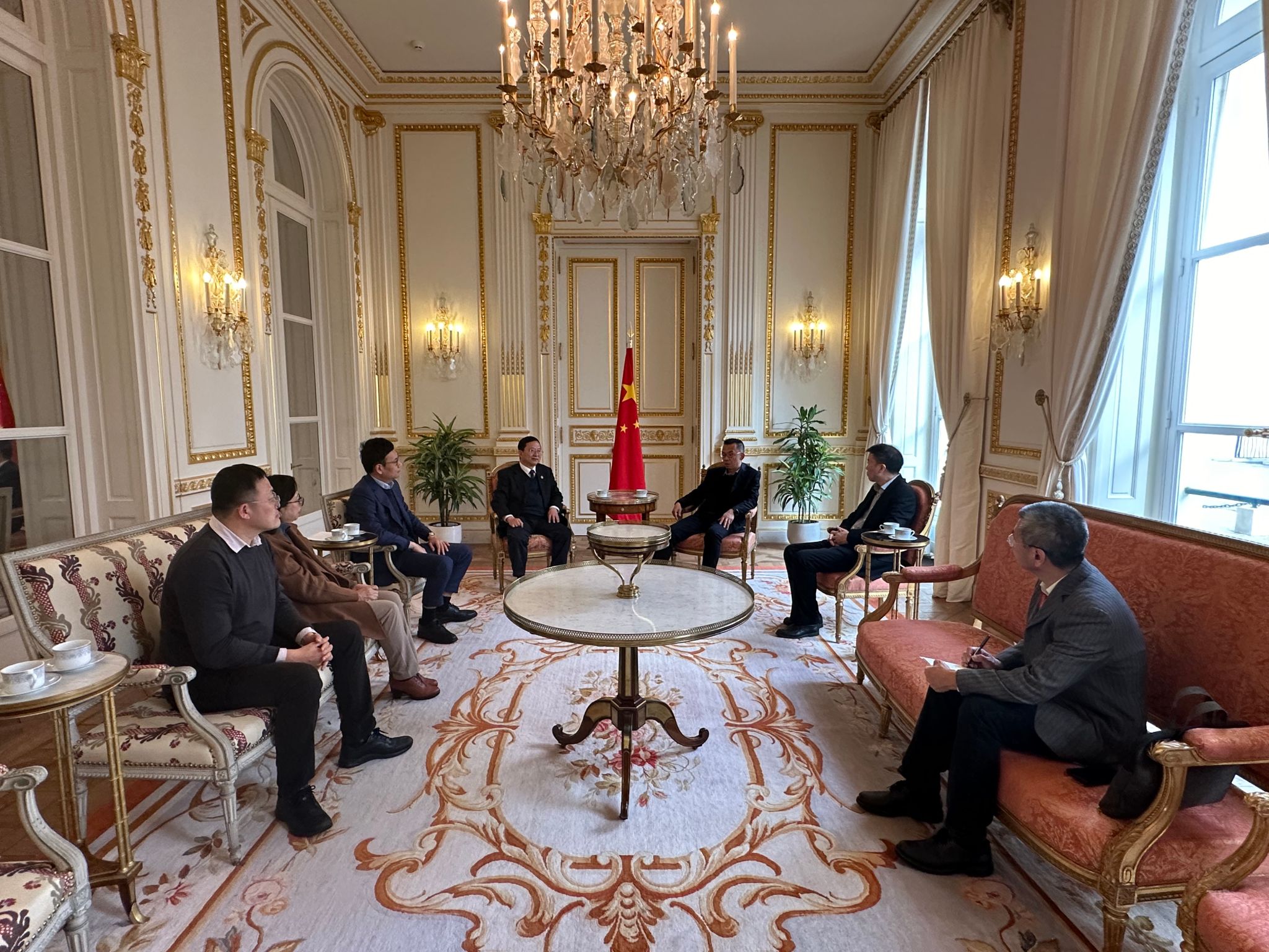 高松校長(zhǎng)一行拜訪了中國駐法國大使館和盧沙野大使。中山大學(xué)代表團(tuán)介紹了學(xué)校與法國高校的交流合作情況。盧沙野大使介紹了法國高等教育發(fā)展的現(xiàn)狀,表示將繼續(xù)為學(xué)校提供支持,推動(dòng)加深學(xué)校與法國高校的合作交流。