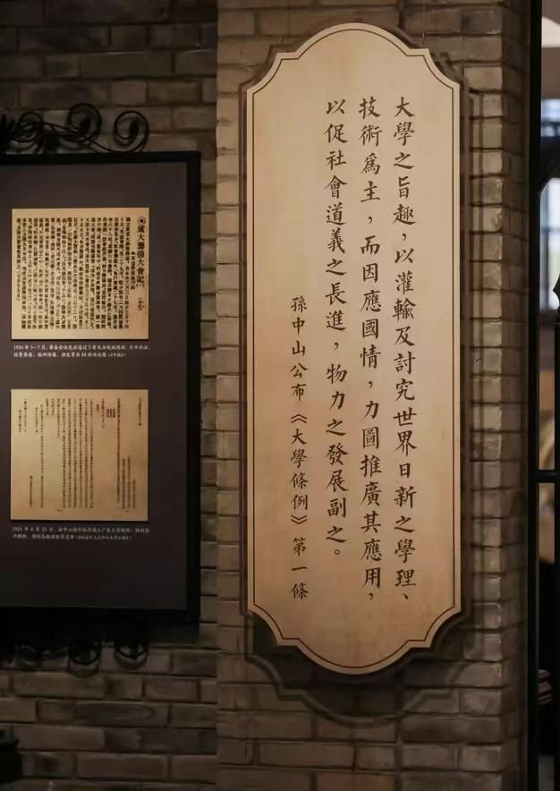 校史館中展示孫中山公布的《大學條例》第一條