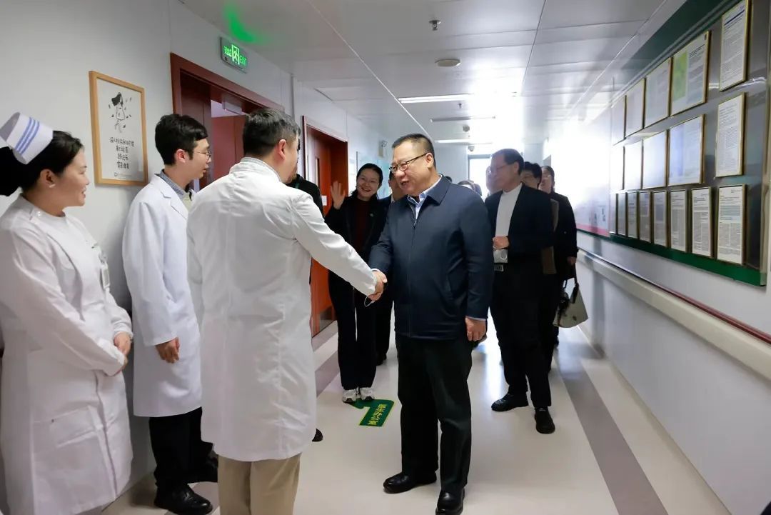 在附屬第六醫院,高松校長參觀走訪了醫院“樂享空間”、客戶服務中心、內鏡中心與關節外科/運動醫學科病房,深入了解臨床一線工作,親切慰問醫護人員。高松校長充分肯定過去一年醫院各項事業發展取得的成績,他強調,希望附屬第六醫院上下繼續齊心協力謀發展,加強“學科交叉+產學研醫深度融合”,加快研究型醫院建設,促進優質醫療資源服務輻射更多地區、惠及更多百姓。