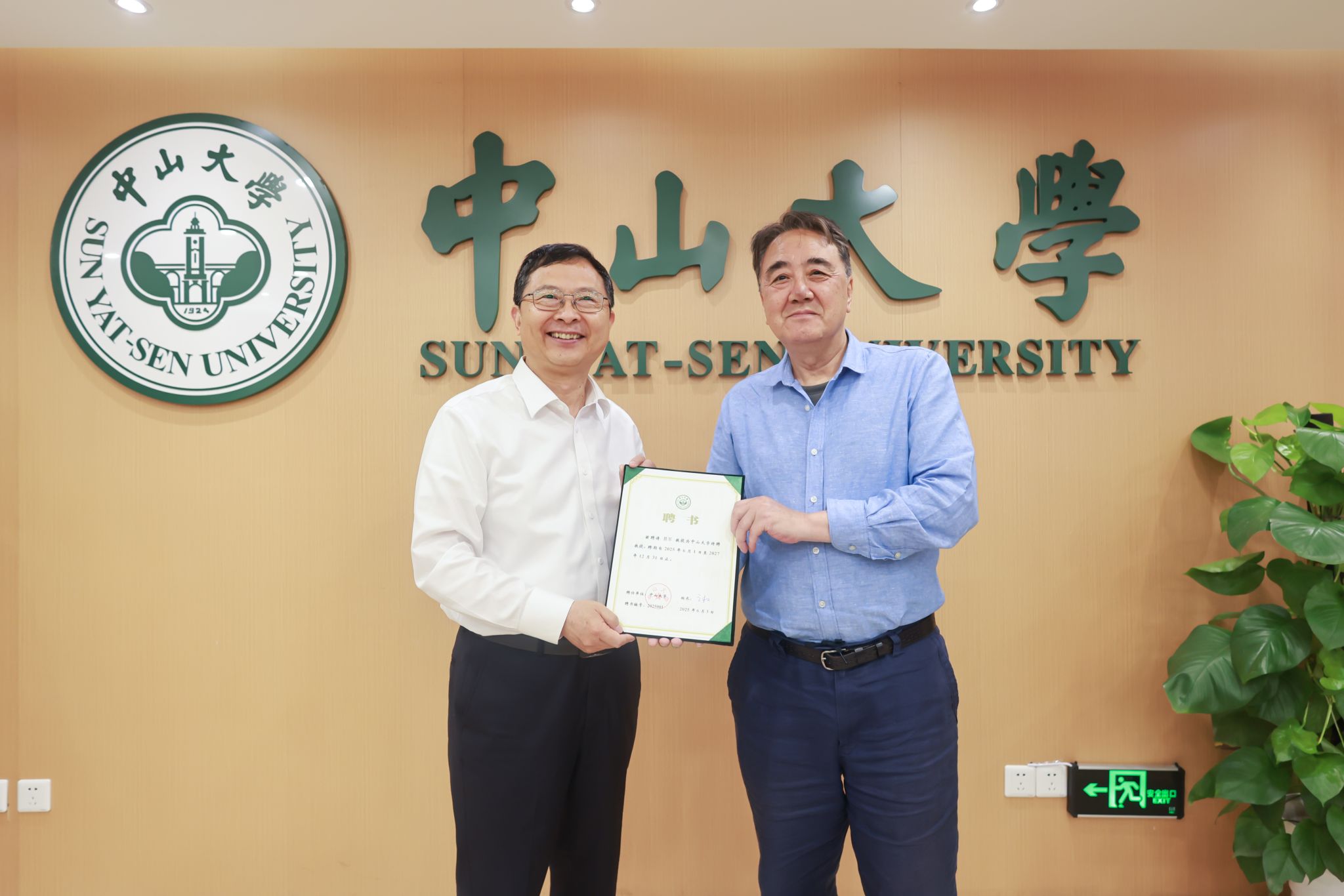 在聘任儀式上,高松為清華大學教授、中山大學特聘教授景軍頒授聘書。未來,景軍將協同牽頭統籌中大深圳校區人文核心通識課程以及文科特色通識課程的建設,協助指導中大社會學、人類學、民族學等學科的建設工作,指導與培育社會學領域、醫學人文領域標志性成果,協助整合資源推動學校人文社科類跨學科平臺的建設。