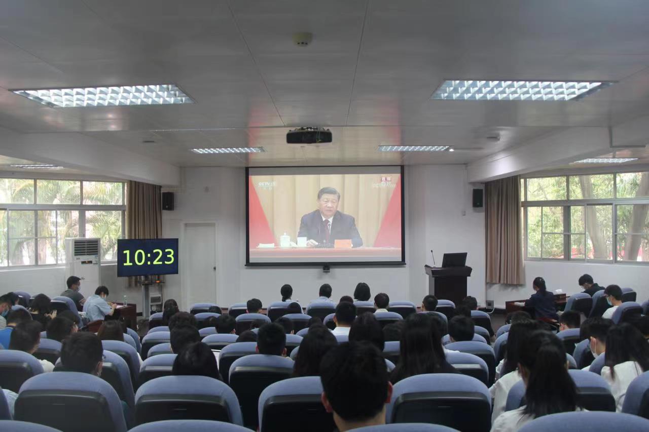 中大新聞網廣州5月10日電(記者蔣靜)5月10日上午10時,慶祝中國共產主義青年團成立100周年大會在北京人民大會堂隆重舉行。中共中央總書記、國家主席、中央軍委主席習近平出席大會并發表重要講話。中山大學第一時間組織師生代表收看大會直播。校黨委余敏斌副書記,校團委全體成員,校學生會、研究生會主席團成員,“兩紅兩優”“優學優干”獲獎者代表,“青馬學員”代表,各二級單位團組織團委書記、團員代表齊聚一堂,共同聆聽習近平總書記的重要講話。