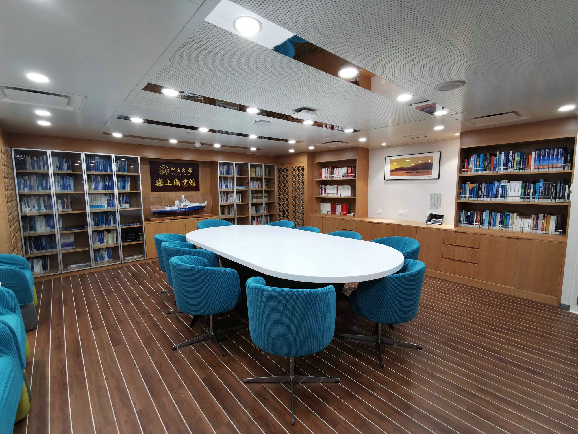 “中山大學(xué)”號海洋綜合科考實習(xí)船是中山大學(xué)海洋學(xué)科群的海上實驗室和海洋科技創(chuàng)新人才培養(yǎng)的重要基地。為滿足海洋科考研究的文獻(xiàn)信息服務(wù)需求,學(xué)校圖書館聯(lián)合海洋科學(xué)考察中心籌備建成中山大學(xué)海上圖書館。現(xiàn)收藏有紙質(zhì)文獻(xiàn)近2,000冊,電子文獻(xiàn)80,000余種,初步形成了覆蓋黨史黨建、校史、海洋科學(xué)、信息科學(xué)與技術(shù)、文學(xué)藝術(shù)、歷史地理等多學(xué)科多語種紙質(zhì)與電子資源的海上文獻(xiàn)保障中心,為隨船科考人員、師生提供文獻(xiàn)閱覽、學(xué)科服務(wù)、閱讀推廣、信息素養(yǎng)教育、用戶培訓(xùn)等多種文獻(xiàn)信息服務(wù)。